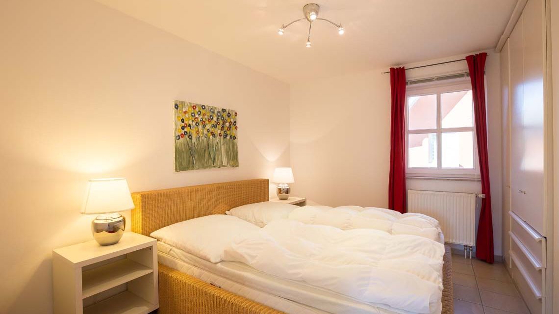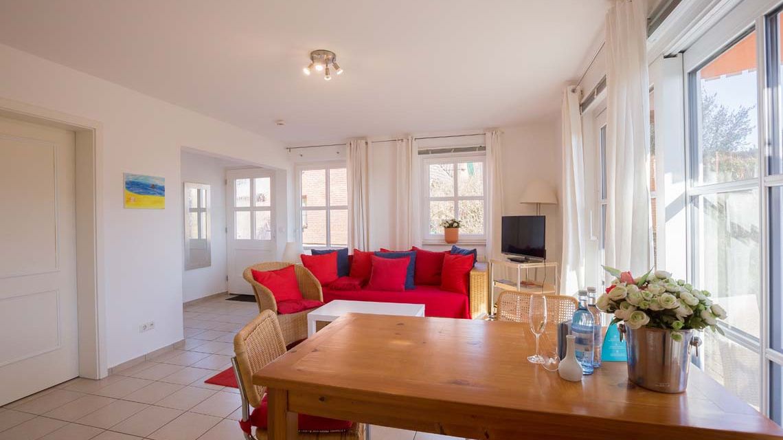 Über den separaten Eingang an der Giebelseite gelangen Sie in den offenen Wohnbereich mit Essplatz und einer voll ausgestatteten Küchenzeile. Das geräumige Schlafzimmer mit Doppelbett und Ausrichtung zur Hofseite sorgt für einen erholsamen Schlaf im Urlaub. Ein Tageslichtbad mit WC, Waschbecken, Dusche und Waschmaschine ist ein weiterer Bestandteil des Objekts.