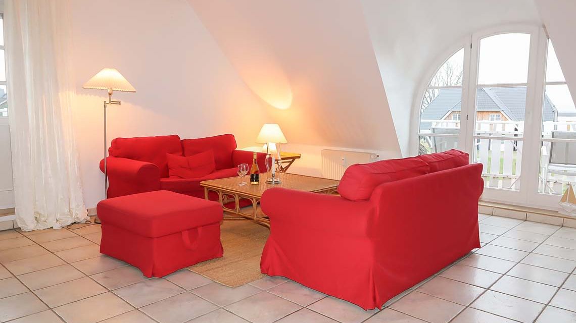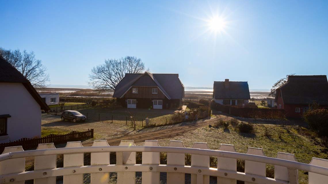 Die Wohnung besticht durch ihre Lage im Haus und ihre Ausrichtung. Die beiden Balkone ermöglichen den Blick über die weiten Wiesen bis zum Bodden und darüber hinaus. Die großen Fenster fangen das Tageslicht ein und lassen die Räume hell erstrahlen.