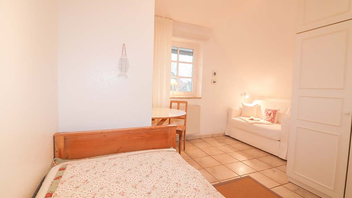 Die Maisonette-Wohung befindet sich im Ober- und Dachgeschoss eines Mehrfamilienhauses mit 6 Einheiten. Es liegt an einem ruhigen Seitenweg, welcher bis zur Badestelle am Bodden weiterführt.